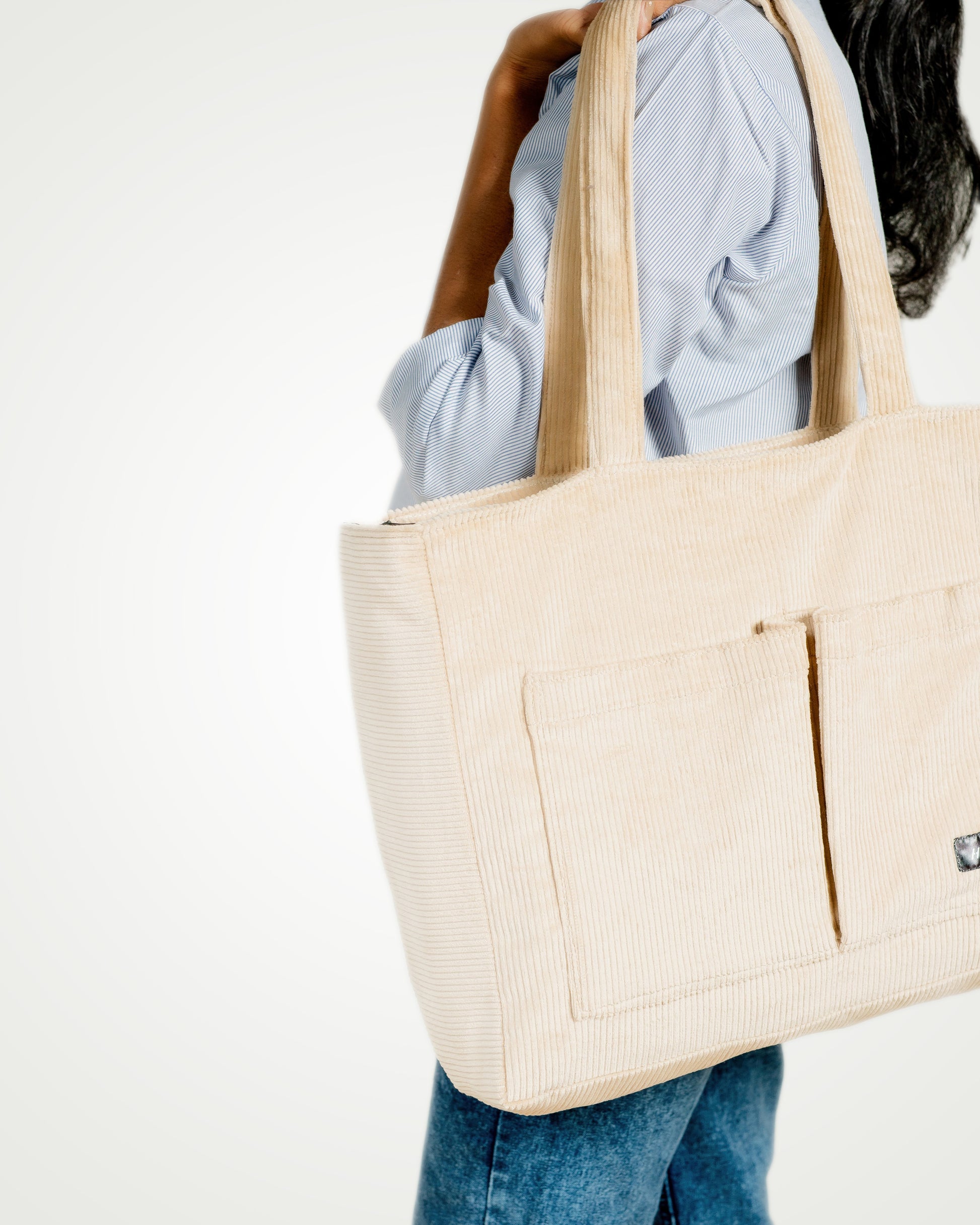 Corduroy Organized Tote Bag - Beige